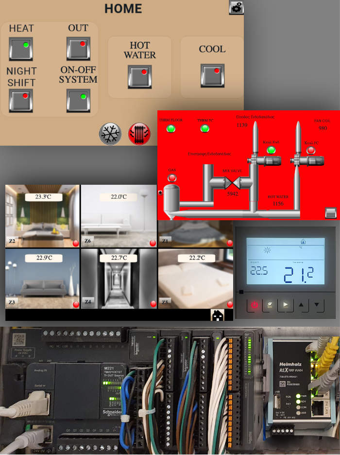 Προγραμματισμός βηματικών κινητήρων, τραπέζια παντογράφων, συστήματα ταινιόδρομων, κινητήρες μεταβλητής συχνότητας, λεβητοστάσια, βάνες, θερμοκρασίας-υγρασίας, ψύξη-θέρμανση